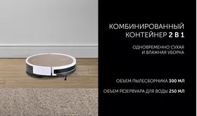 Модель может выполнять как сухую, так и влажную уборку. Для этого необходимо заменить контейнер для пыли на резервуар с водой.