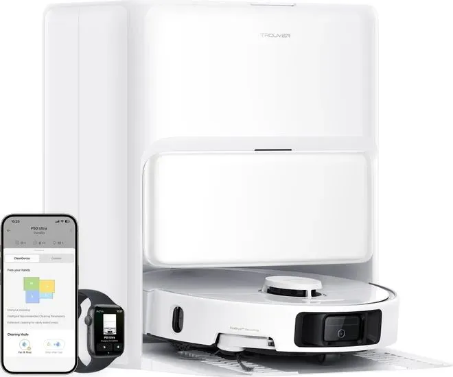 Конструктивные особенности: Встроенный гироскоп, Индикатор заполнения пылесборника, Мягкий бампер, Станция самоочистки