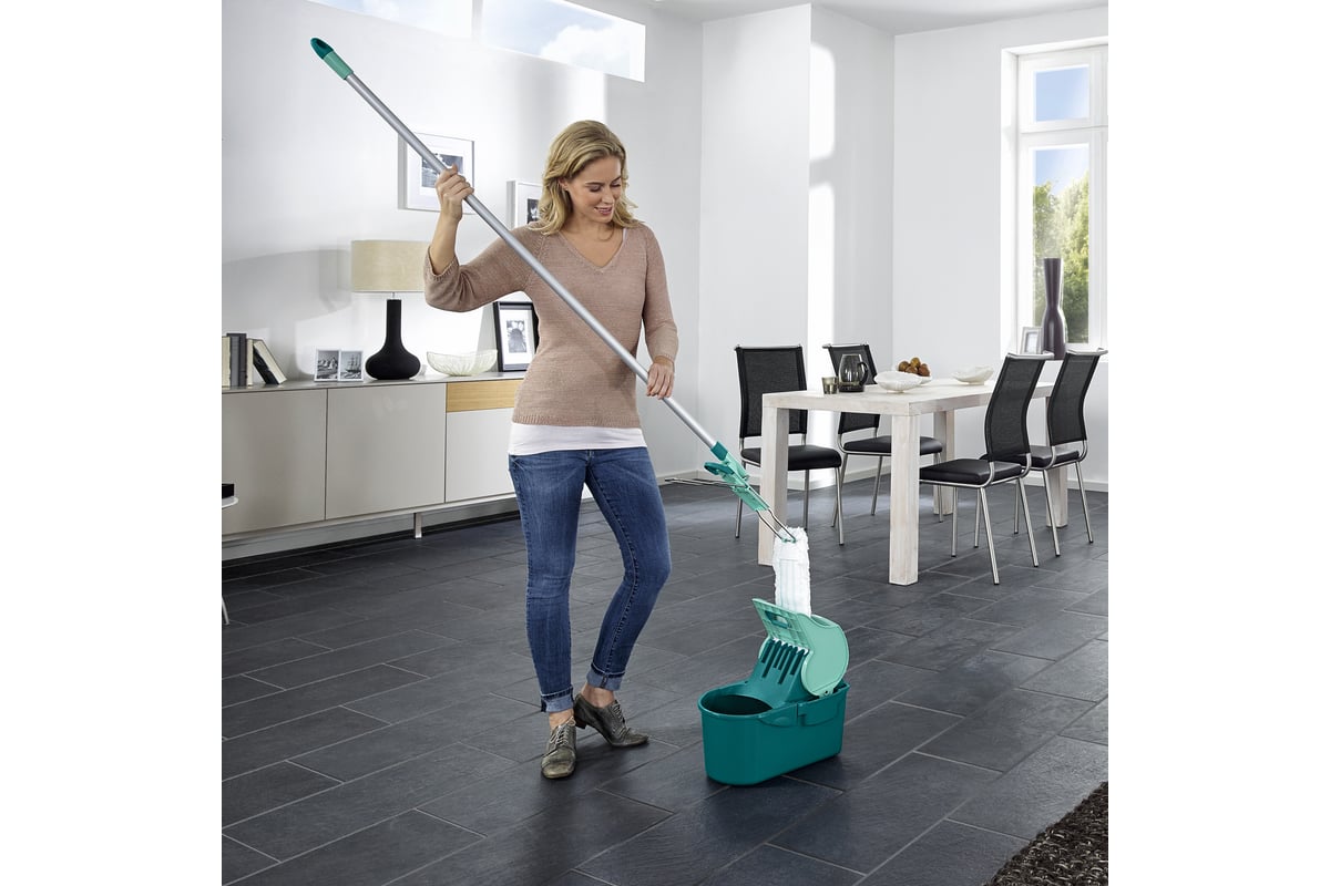 Набор - швабра и ведро Leifheit применяется как для жилых, так и для служебных помещений среднего размера.