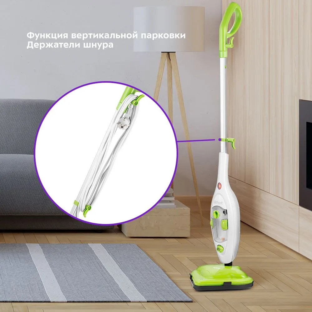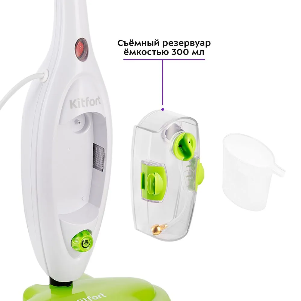 КТ-1060 – устройство, которое поможет избавиться от грязи с помощью мощной струи пара, а также продезинфицирует поверхность. Прибор можно использовать как 5 устройств: паровая швабра, ручной пароочиститель, стеклоочиститель, отпариватель и дезинфектор.