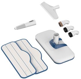 Комплектация Парогенератор, ручка, основная насадка, тряпки для пола, круглая щетка, металлическая щетка, струйная насадка, насадка-скребок для мытья окон, стакан для наливания воды, руководство по эксплуатации