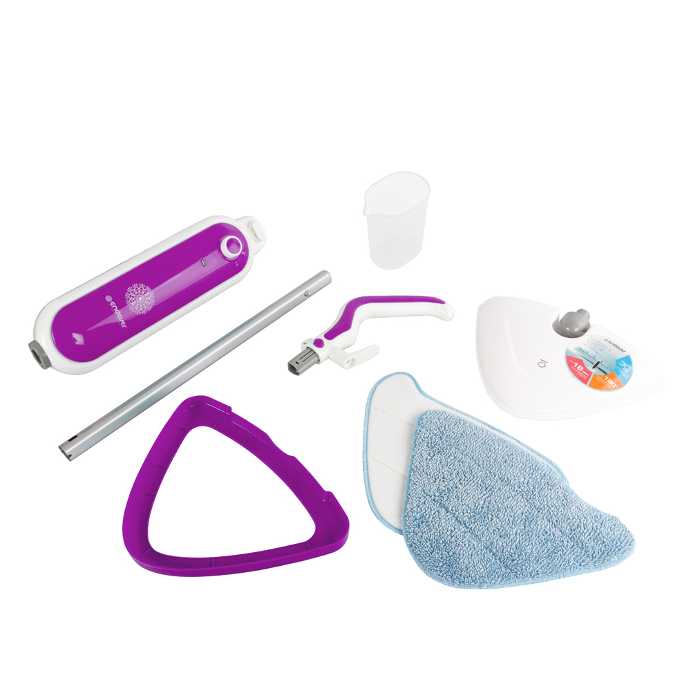 Паровая швабра использует пар для удаления грязи, пятен и чистки без использования химических средств, Подходит для очистки деревянных и ламинированных полов, керамической плитки и линолеума, Мощная паровая струя превосходно очищает и дезинфицирует, В комплекте многоразовые моющиеся насадки