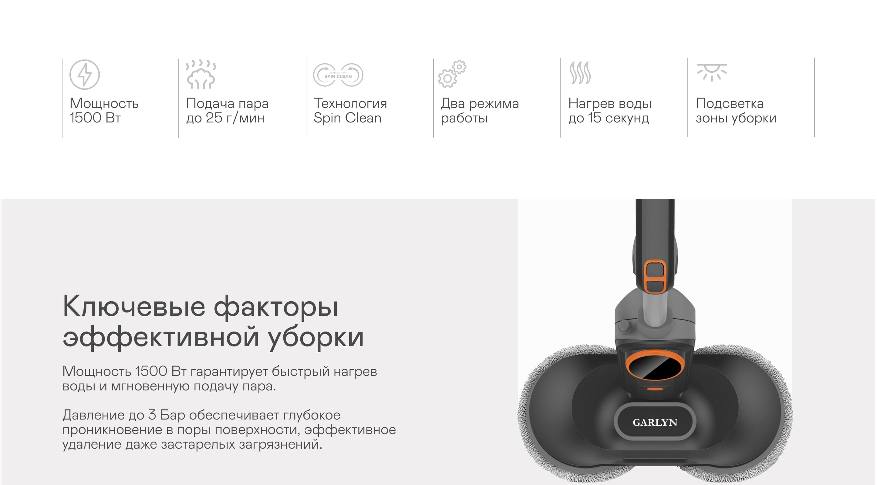 Корпус паровой швабры - 1 шт.; Съёмная ручка - 1 шт.; Съёмная трубка-удлинитель для ручки - 1 шт.; Резервуар для воды - 1 шт.; Салфетки для пола - 6 шт.; Шуруп - 1 шт.; Руководство пользователя - 1 шт.; Краткая инструкция пользователя - 1 шт.