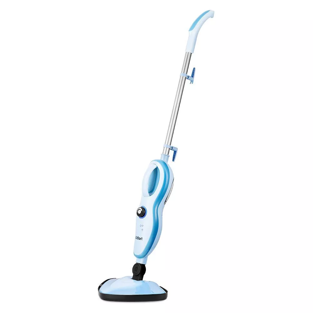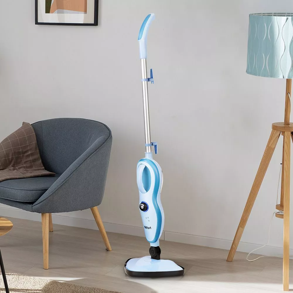 Паровая швабра КТ-1046—универсальное устройство, которое поможет избавиться от пыли и грязи с помощью мощной струи пара, а также продезинфицирует поверхность. Швабра поможет очистить раковину и плиту, зеркала и мебель без каких-либо химических средств.