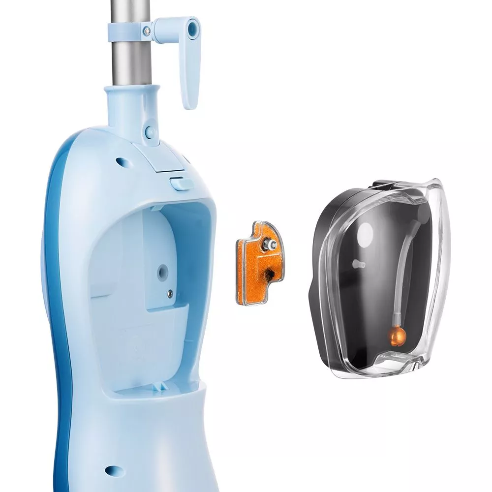 Швабра оснащена резервуаром для воды ёмкостью 370 мл, что позволит убрать большую площадь сразу. Конструкция удобно разбирается, чтобы наполнить и вымыть резервуар. Во время работы парогенератора вода из резервуара проходит через специальный фильтр.