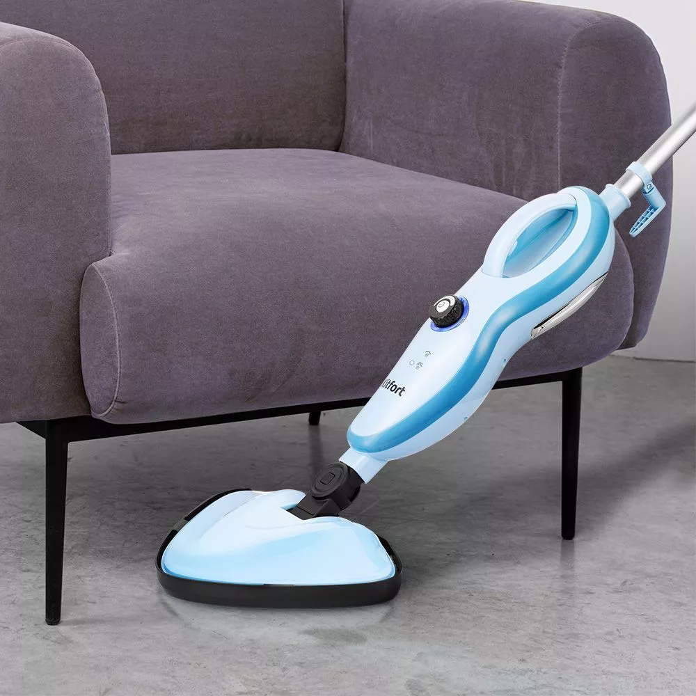 Швабра КТ-1046 оснащена специальной конструкцией, благодаря которой вы сможете легко вымыть пол под мебелью. Принцип действия парогенератора основан на воздействии горячего пара на загрязнения. Пар проникает внутрь загрязнения, размягчая и растворяя его.