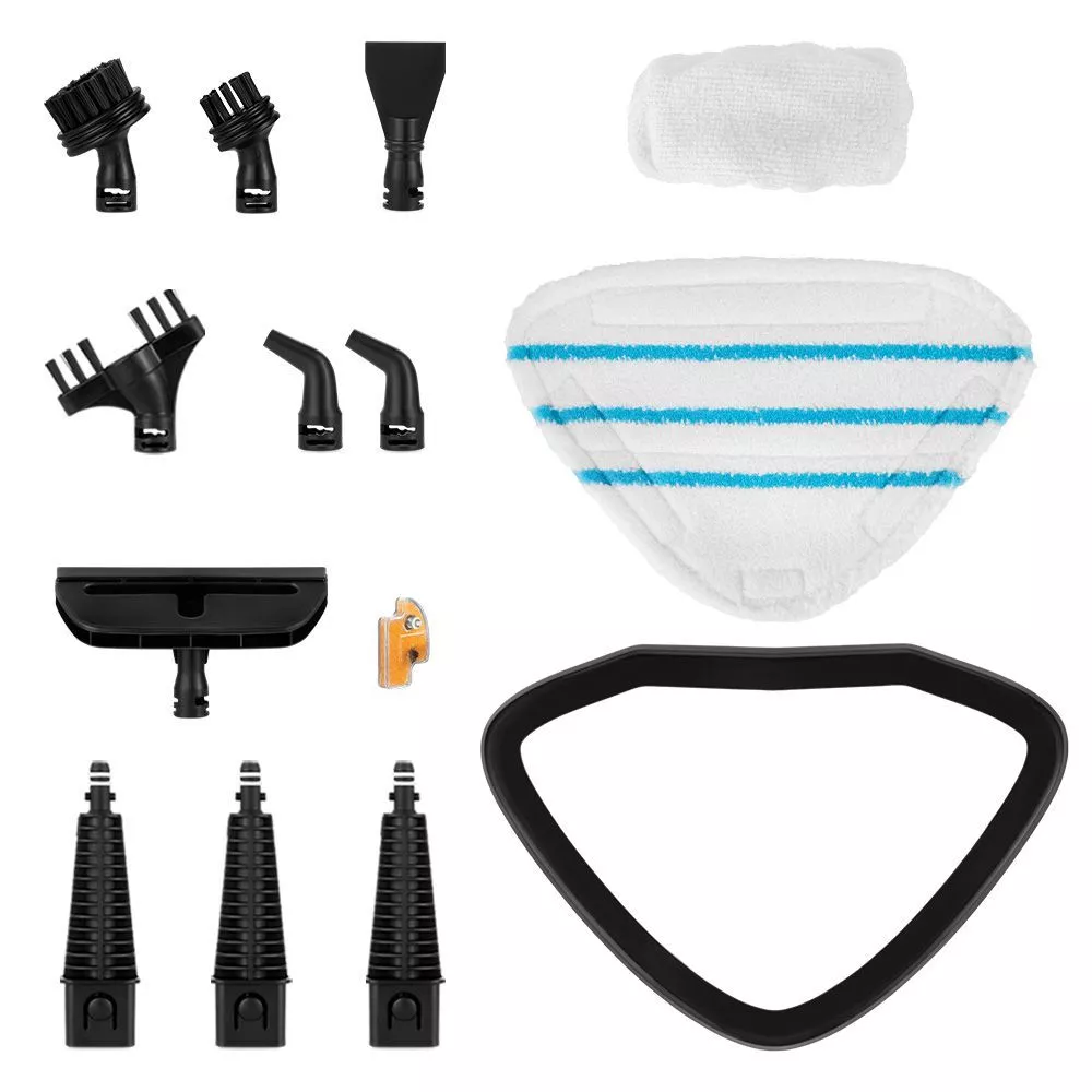 Нейлоновые щётки и скребок используются для удаления стойких загрязнений, когда требуется применить механическое воздействие. Угловая насадка предназначена для очистки труднодоступных мест. Струйная насадка используется для очистки углов, плинтусов и т.д.