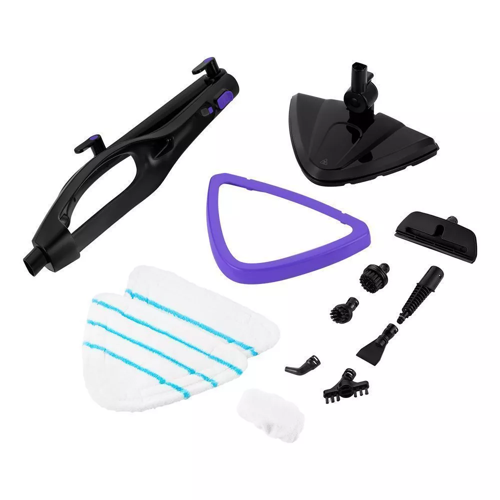 Множество насадок, которые идут в комплекте с паровой шваброй, помогут отчистить труднодоступные места и различные поверхности.