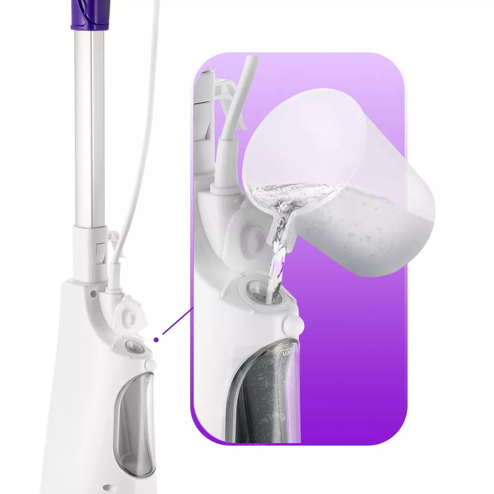 Швабра оснащена несъёмным резервуаром для воды ёмкостью 450 мл, что позволяет производить непрерывную уборку в течение 25 минут. Мерным стаканчиком удобно заливать воду в резервуар. Когда устройство готово к работе, индикатор горит непрерывно.