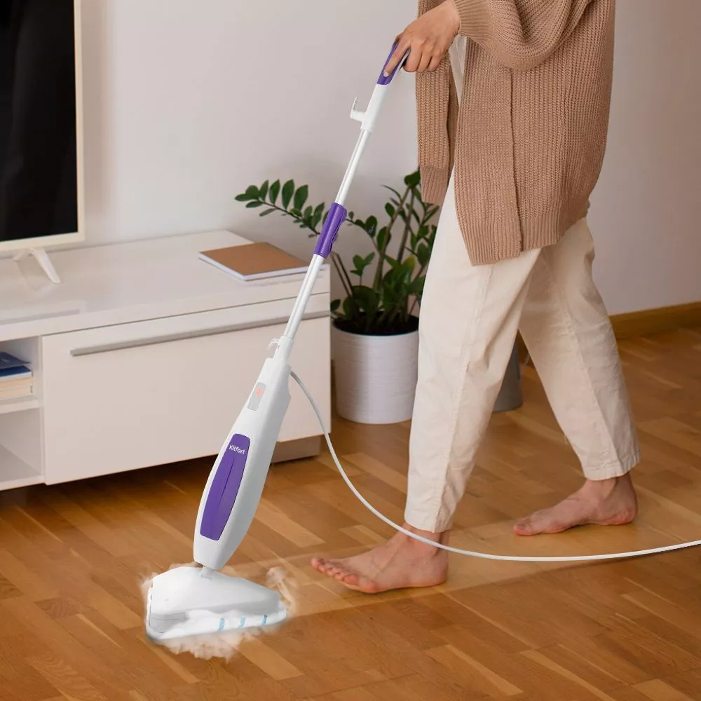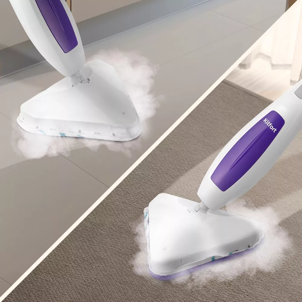 Паровая швабра КТ-1056 — универсальное устройство, которое поможет избавиться от пыли и грязи с помощью мощной струи пара, а также продезинфицирует обрабатываемую поверхность. Высокая температура способствует процессу очистки любых загрязнений.
