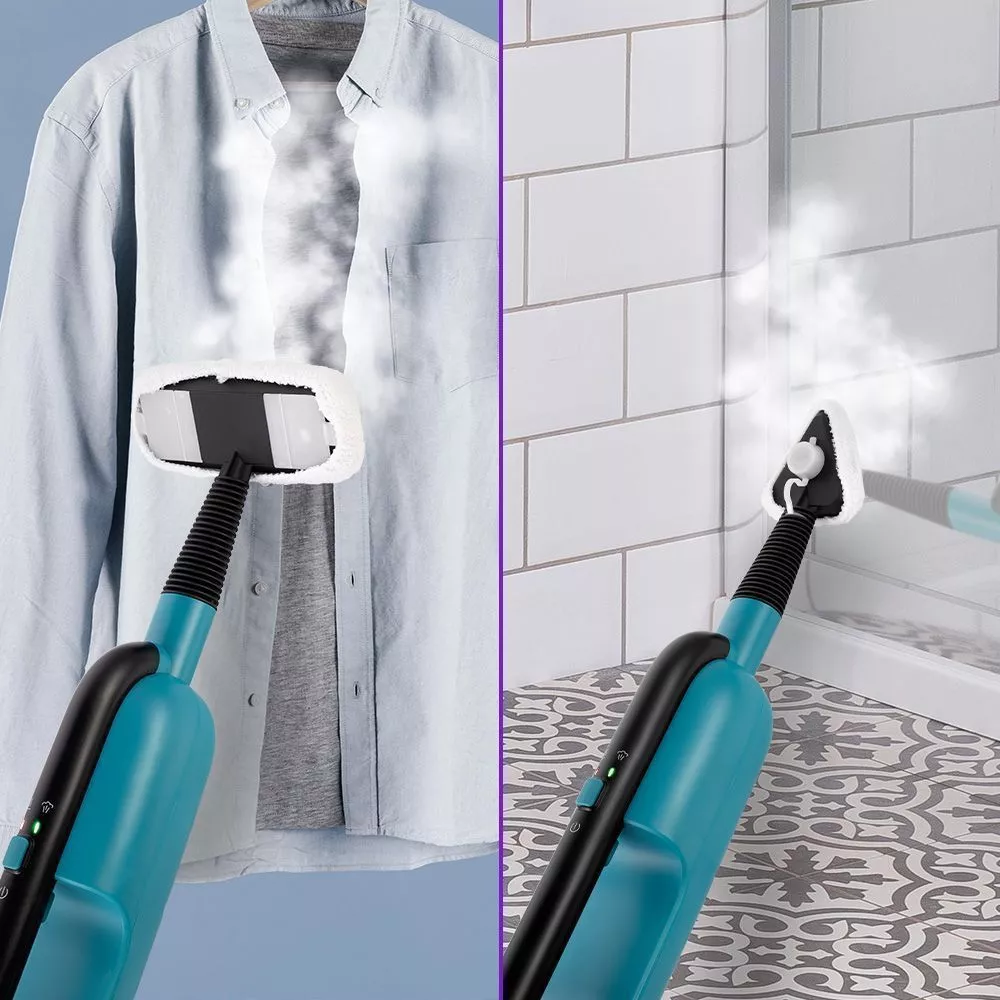 Конструкция «2 в 1» предусматривает наличие ручного модуля, который удобно использовать с насадками. С помощью насадок можно очистить большинство вещей в доме, например, отпарить шторы и мягкую мебель.