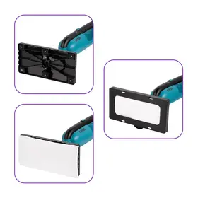 Для очистки пола к ручному модулю паровой швабры подсоединяют удлинительную трубку, ручку и насадку для пола. На специальную насадку для пола надевается тряпка для пола. Насадка может вращаться в двух плоскостях, что обеспечивает эффективную очистку.