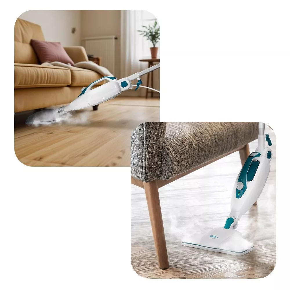 Паровая швабра КТ-1080 — поможет избавиться от пыли и грязи с помощью мощной струи пара, а также продезинфицирует обрабатываемую поверхность. КТ-1080 очистит раковину и плиту на кухне, зеркала и мебель без химических средств, исключительно паром.