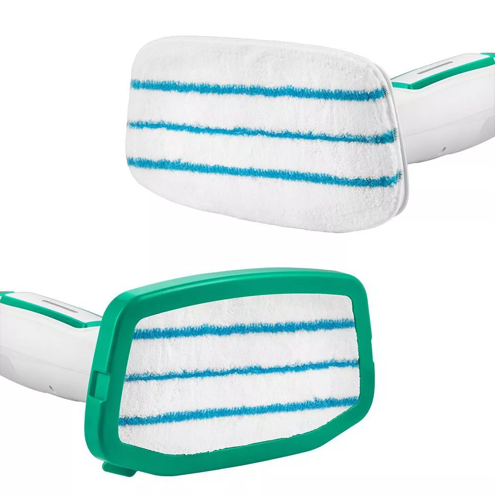 Также к паровой швабре идёт мерный стакан, воронка, тряпки для пола и рамка для ковра. Напольная щётка по краям оснащена липучками для закрепления тряпки. Рамка для ковра облегчает скольжение щётки для пола по ковру и предотвращает сползание тряпки.