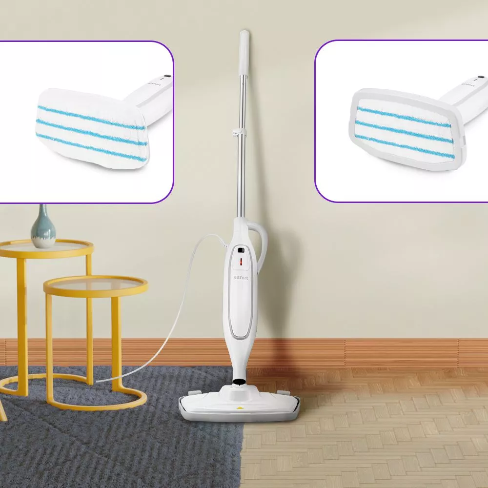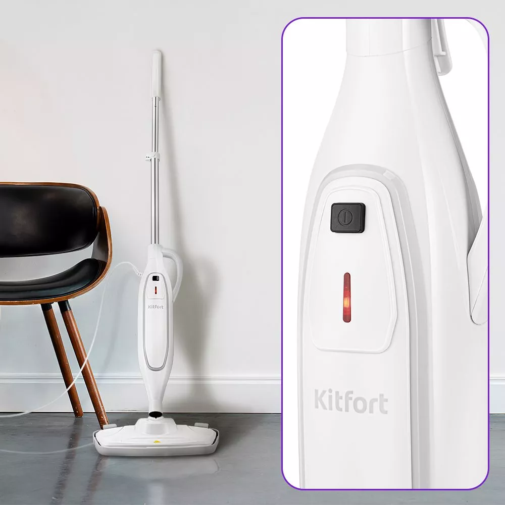 Паровая швабра КТ-3903 – устройство, которое поможет избавиться от грязи с помощью мощной струи пара, а также продезинфицирует поверхность. Вы сможете легко очистить раковину или плиту на кухне, зеркала, мебель без химических средств, исключительно паром.