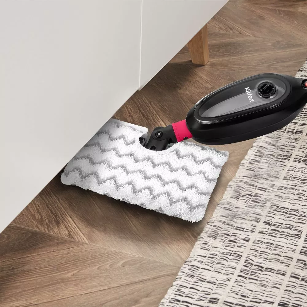 Паровая швабра КТ-3919 имеет большой угол наклона и манёвренную щётку, что делает её максимально удобной для чистки полов под мебелью и в других труднодоступных местах. Эффективная уборка без бытовой химии!