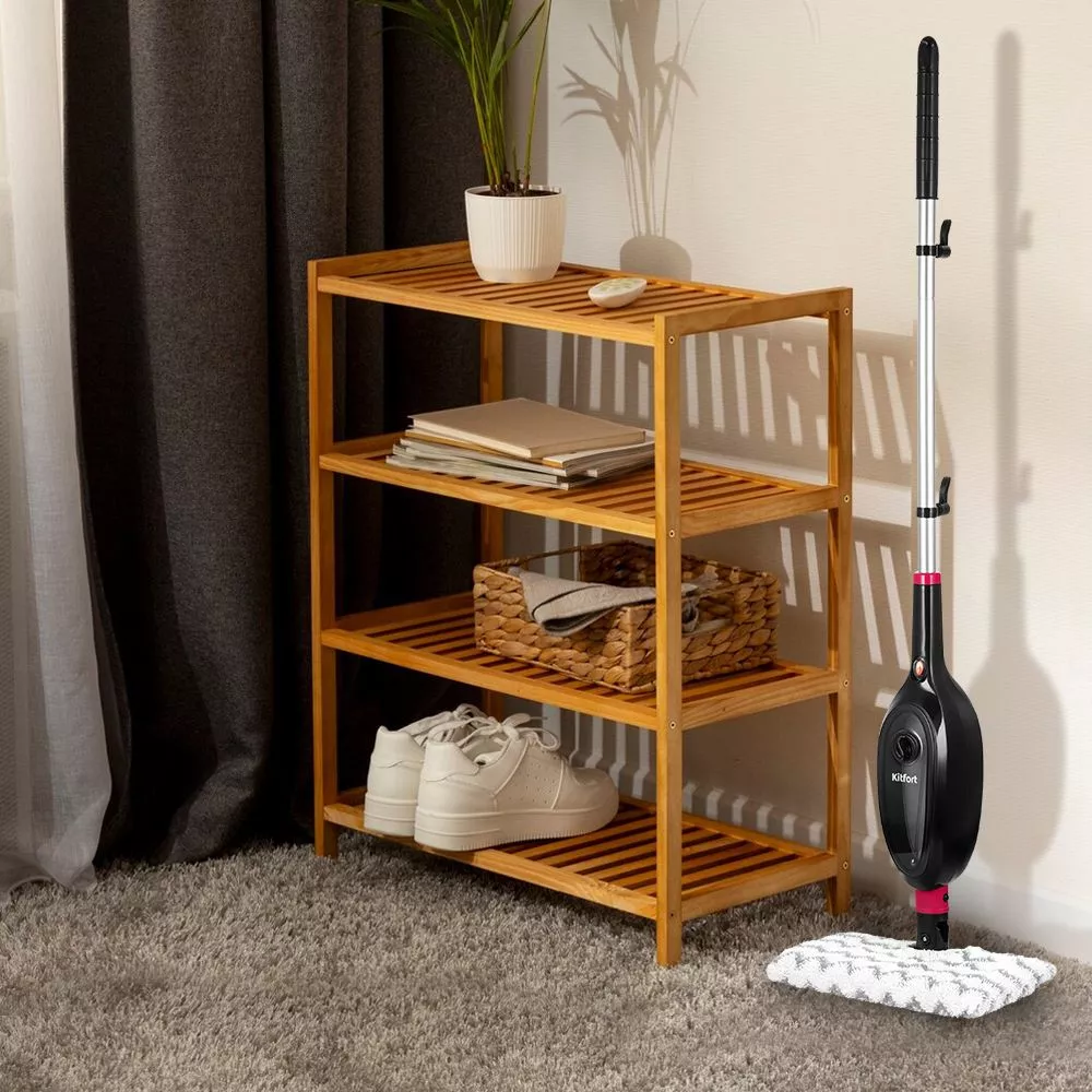 Паровая швабра КТ-3919 обладает функцией вертикальной парковки, поэтому её необязательно ставить в шкаф. А благодаря компактным размерам, она не будет занимать много места.