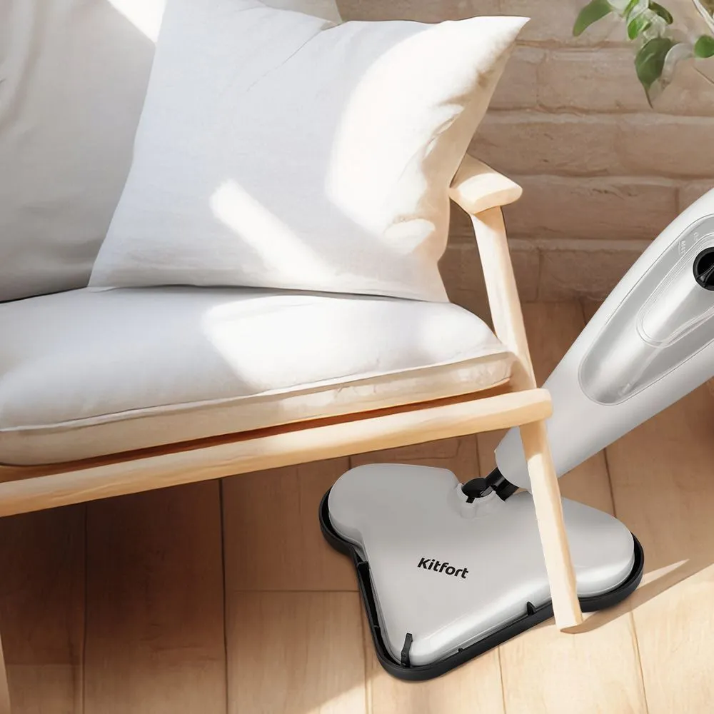 Паровая швабра КТ-3922 — универсальное устройство, которое поможет избавиться от пыли и грязи с помощью мощной струи пара, а также продезинфицирует обрабатываемую поверхность. Уборку паровой шваброй можно проводить без чистящих средств.