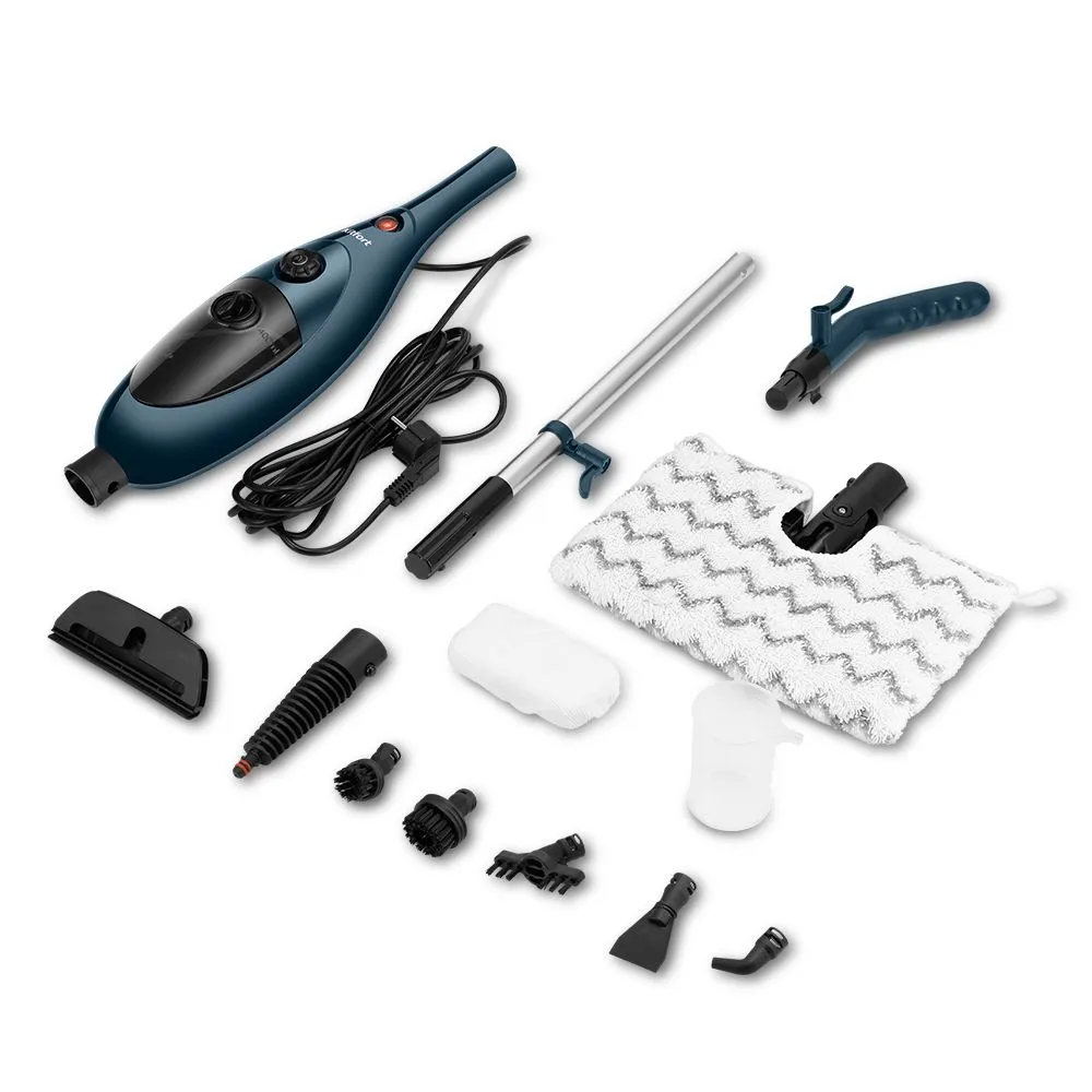Конструкция «2 в 1» предусматривает наличие ручного модуля паровой швабры, который удобно использовать с насадками. С помощью насадок можно очистить большинство вещей в доме. Ёмкость резервуара для воды 400 мл, поэтому этого хватит на всю уборку.