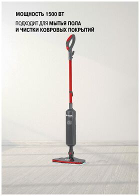 Резервуар для воды имеет объём 420 мл. Пользоваться прибором очень легко благодаря удобной ручке эргономичной формы. В комплект входят две тканевые насадки, рамка для чистки ковров и мерный стаканчик.