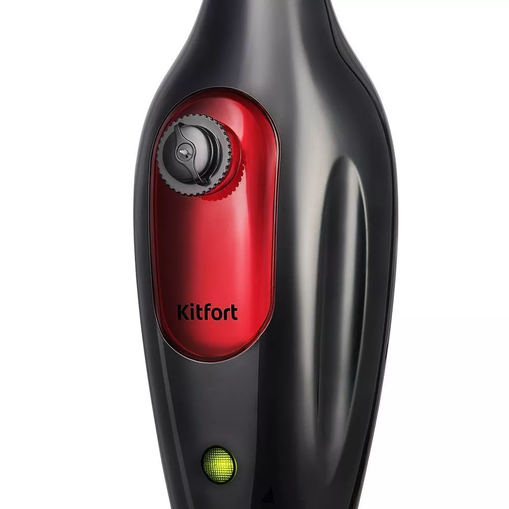 Паровая швабра обладает функцией вертикальной парковки и большим углом наклона при уборке, который поможет легко убирать пространство под мебелью. Также у швабры КТ-1069 предусмотрены держатели для шнура.