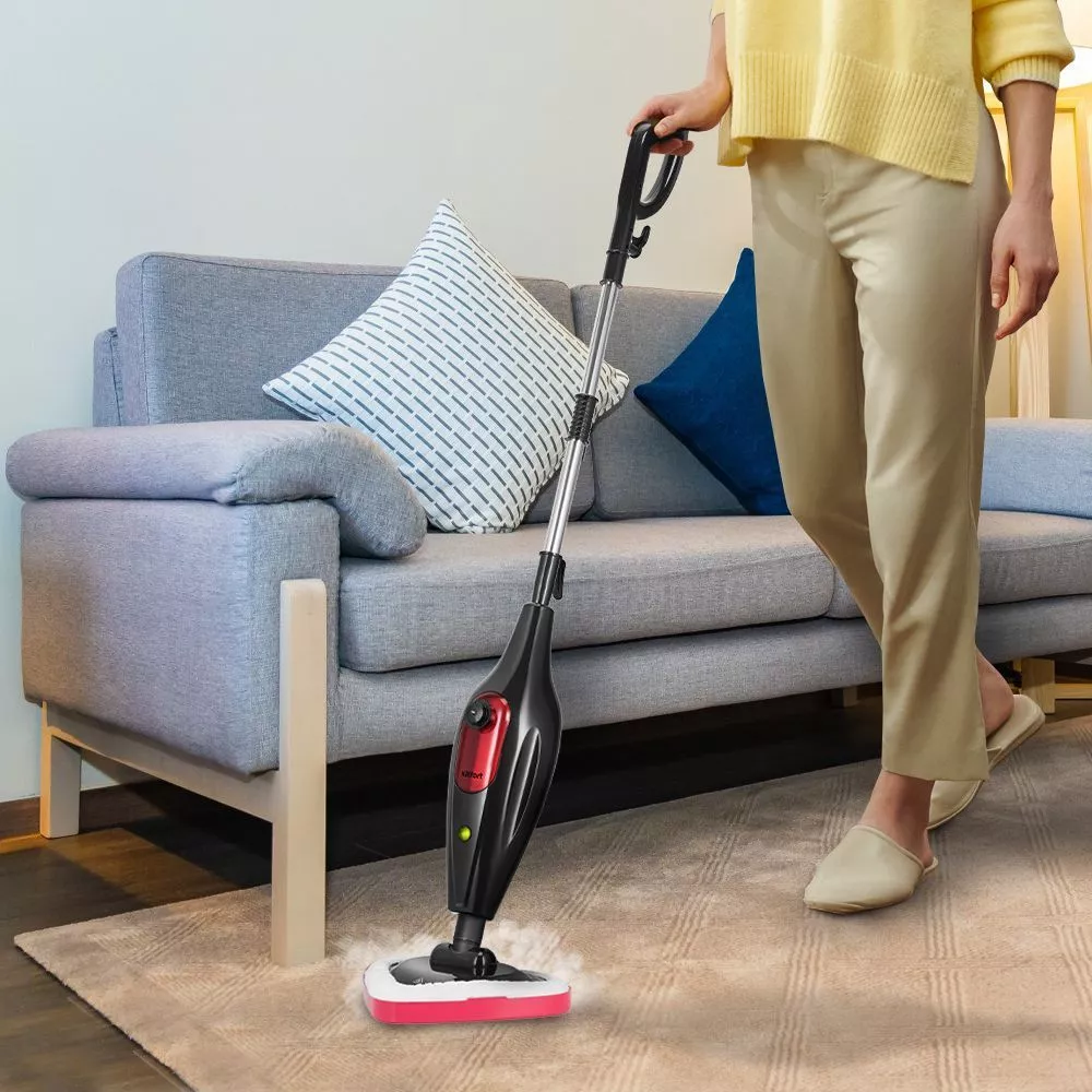 Для паровой швабры не нужны чистящие средства, поэтому она станет идеальным решением уборки дома. В комплекте предусмотрена рамка для ковра, которая обеспечивает лёгкое скольжение насадки для пола по ковру.