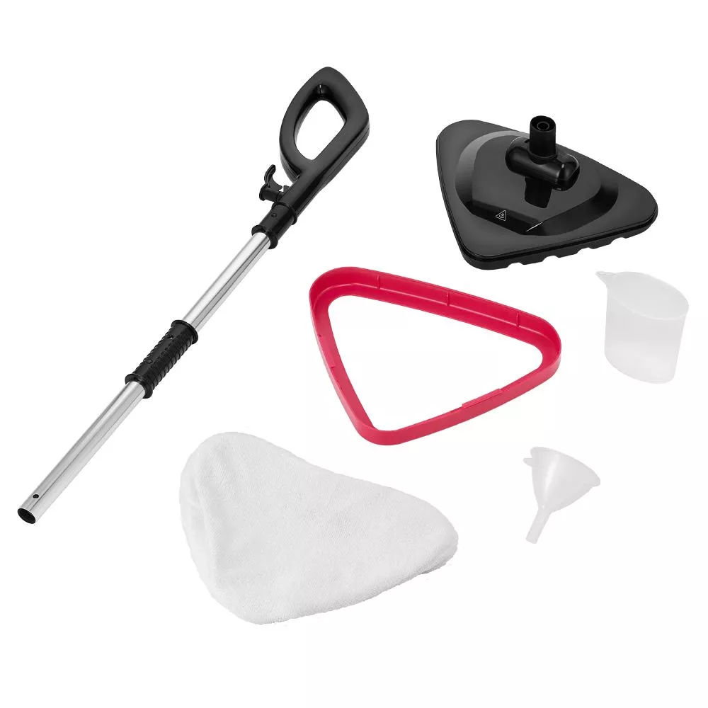 В комплекте к прибору идут 2 удлинительные трубки, соединитель, ручка, насадка для пола, тряпка для пола, рамка для ковра, мерный стакан и воронка. Всё, что нужно, чтобы сделать уборку лёгкой и приятной!