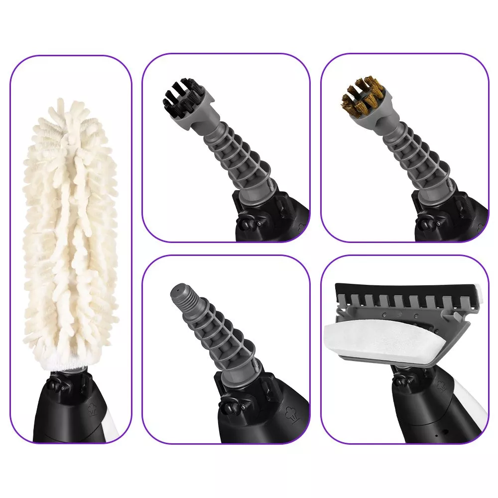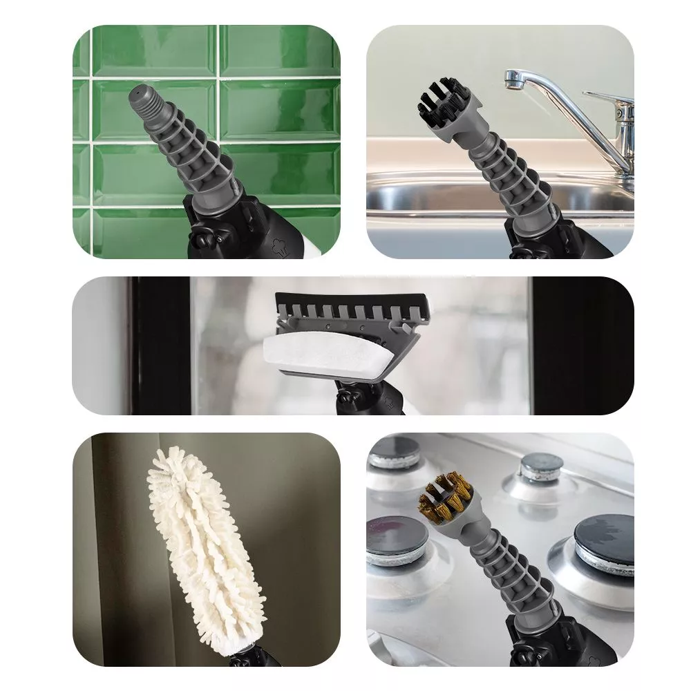 Конструкция «2 в 1» предусматривает ручной модуль. Скребок, латунная и нейлоновые щётки очищают сложные загрязнения с помощью механического воздействия, а струйная помогут очистить щели и углы. Также есть насадка и тряпка для удаления пыли.