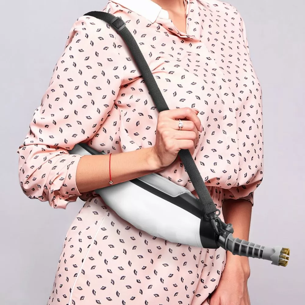 В комплекте к паровой швабре идёт ремень для переноски, который крепится к швабре при использовании устройства с насадками без удлинительной ручки.