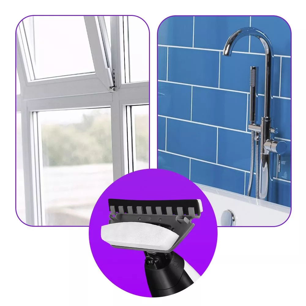 Устройство имеет функцию вертикального отпаривания, это удобно для очистки окон и кафельной плитки. В комплекте предусмотрена специальная насадка для отпаривания со скребком. Также её можно использовать с тряпкой для отпаривания, чтобы отпаривать одежду.