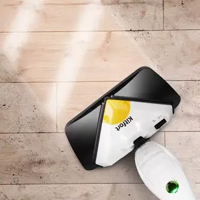 Паровая швабра обладает функцией вертикальной парковки и большим углом наклона при уборке, который поможет легко убирать пространство под мебелью. Напольная щётка закреплена на специальном шаровом шарнире с наклоном в двух плоскостях.
