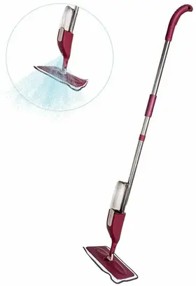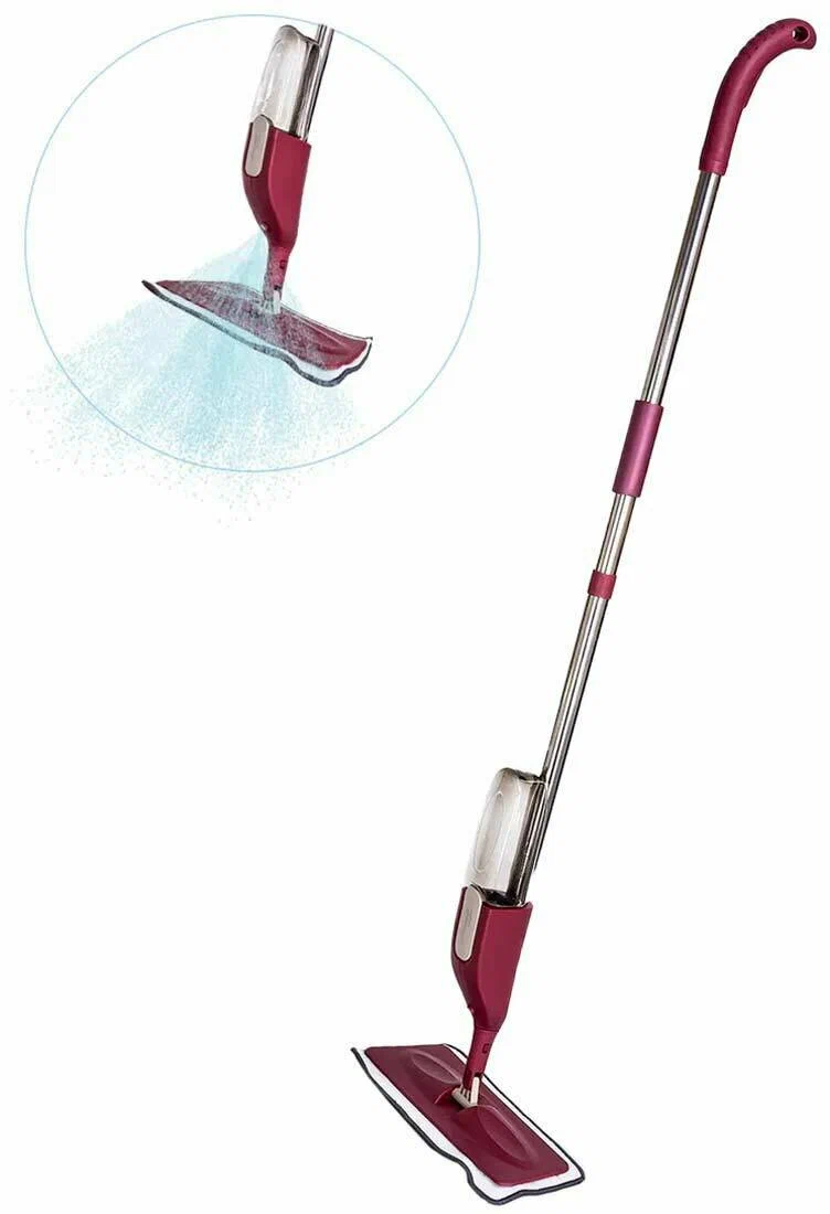 в комплект входит щетка для очистки микрофибры 4 в 1; размер площадки швабры: 36 x 9.5 см; резервуар для воды: 300 мл; быстрая пульверизация: 0,1 с; площадь уборки на 1 заливке резервуара: до 90 м2; длина распыления: до 95 см; экономичное распыление жидкости: до 2 мл за одно распыление; вращение насадки на 360°
