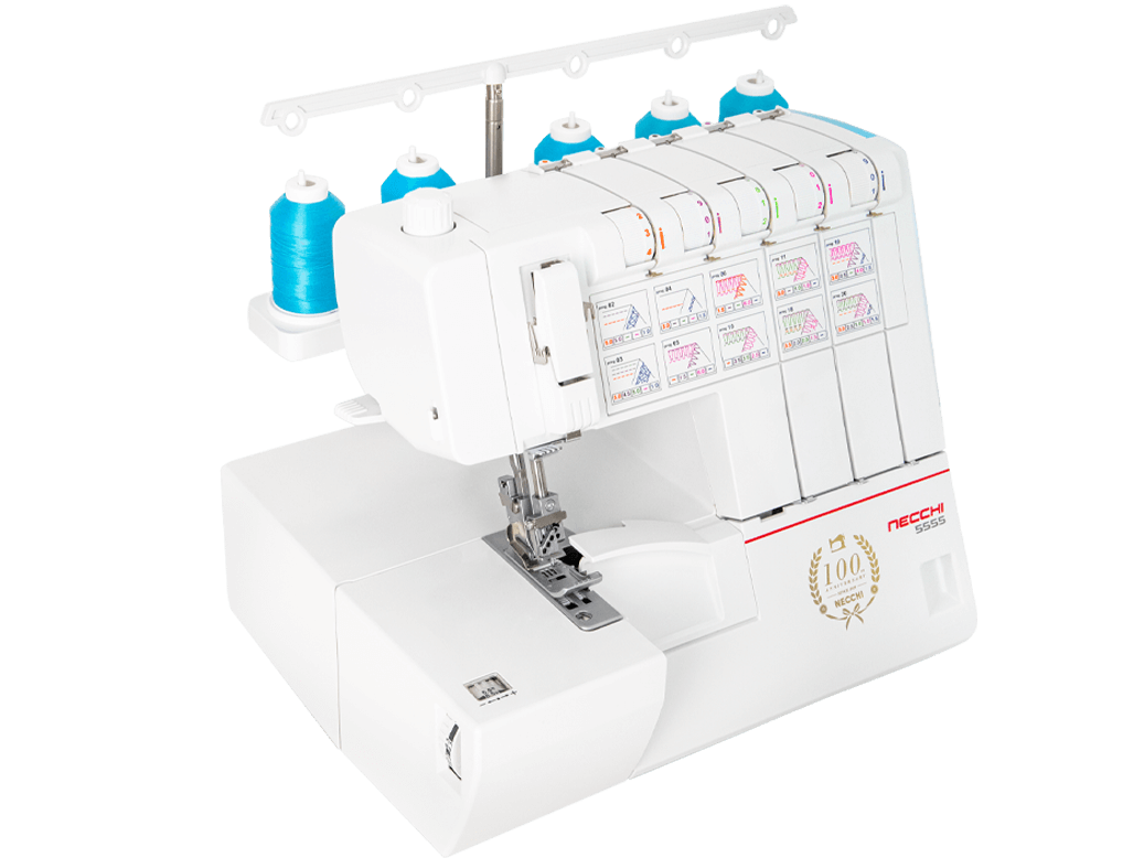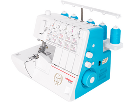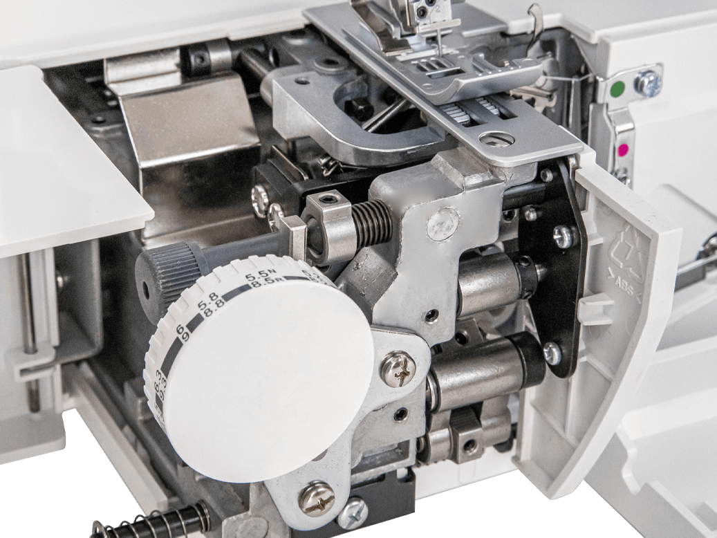 Машина выполняет все виды оверлочных и плоских строчек. Начиная от роликовой строчки, 3-х ниточной оверлочной до 3-х игольной плоской строчки и 5-ти ниточной оверлочной строчки.