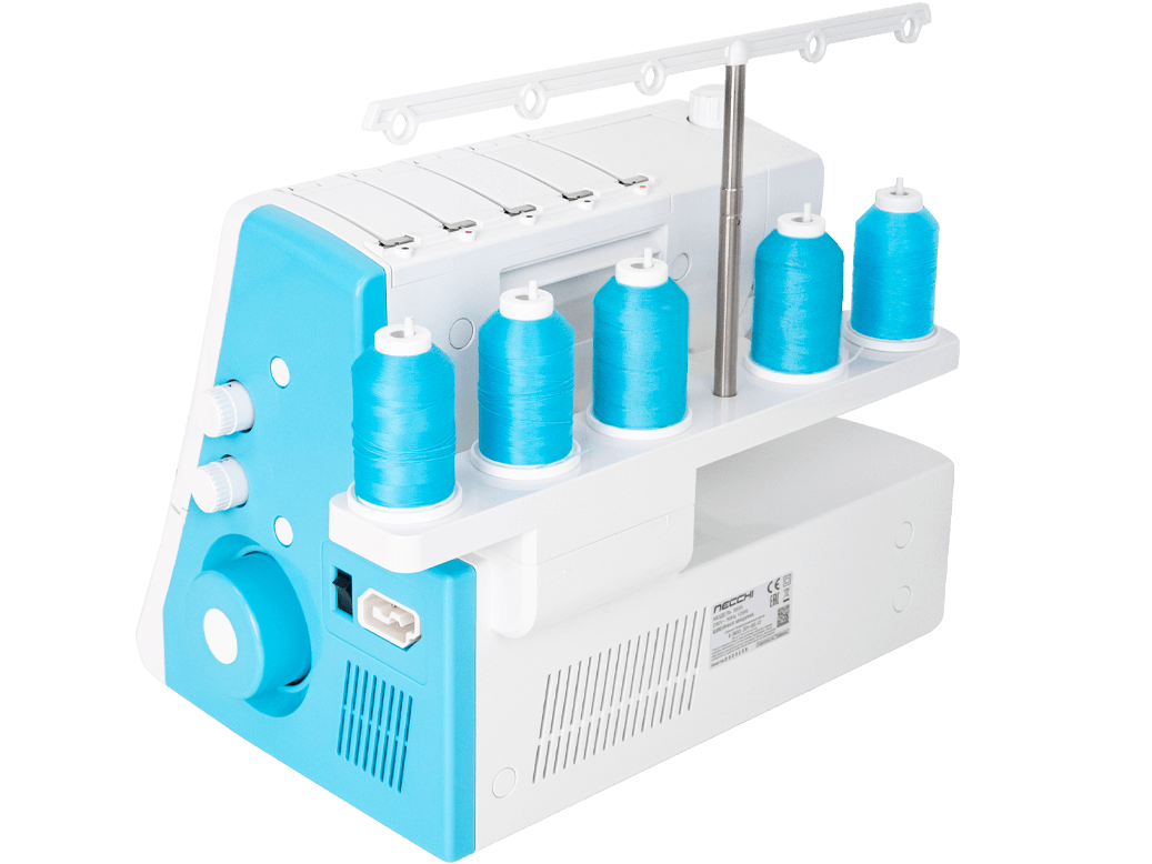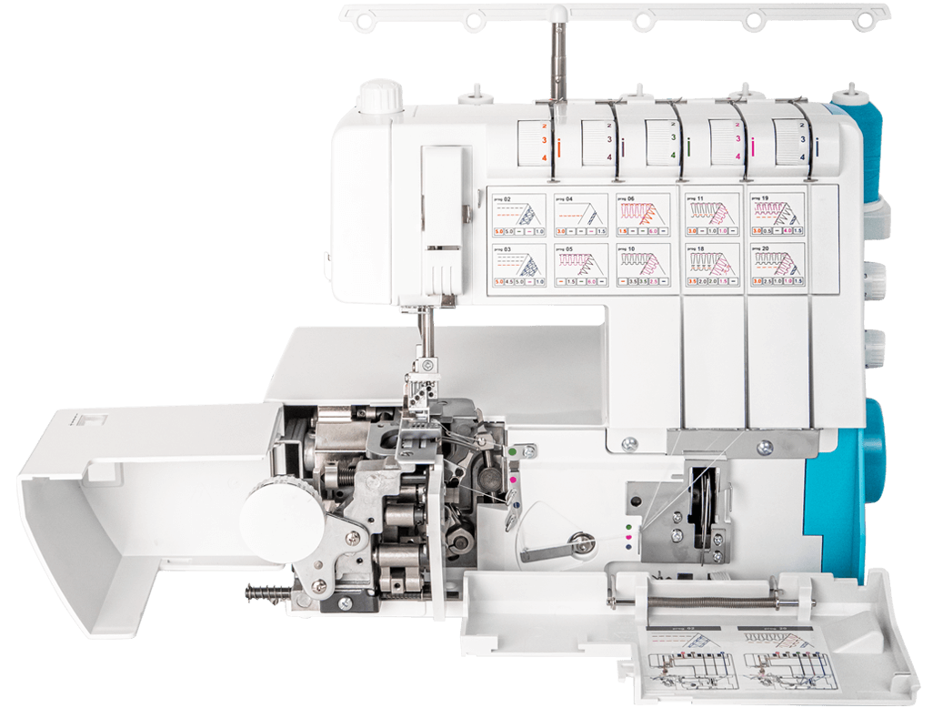 Заправка нитями отмечена цветными метками, исключающими ошибки и неточности. Каждой нити присвоен свой цвет. Справочная информация содержится в цветной диаграмме на внутренней поверхности передней откидывающейся крышки.