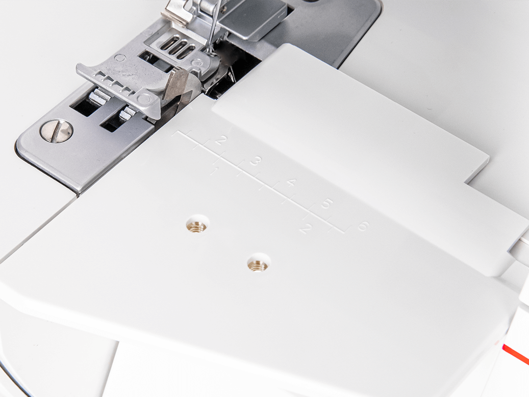 Рабочая поверхность имеет съемную заменяемую часть. Для плоских строчек используется съемный столик. На нем есть размерная линейка, используемая в качестве направляющей и отверстия с резьбой для фиксации дополнительных приспособлений.
