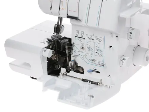 Ручной контроль натяжения нитей в данном оверлоке сочетается с дифференциальной подачей, ручной регулировкой прижима ткани, регулировкой ширины обреза ткани.