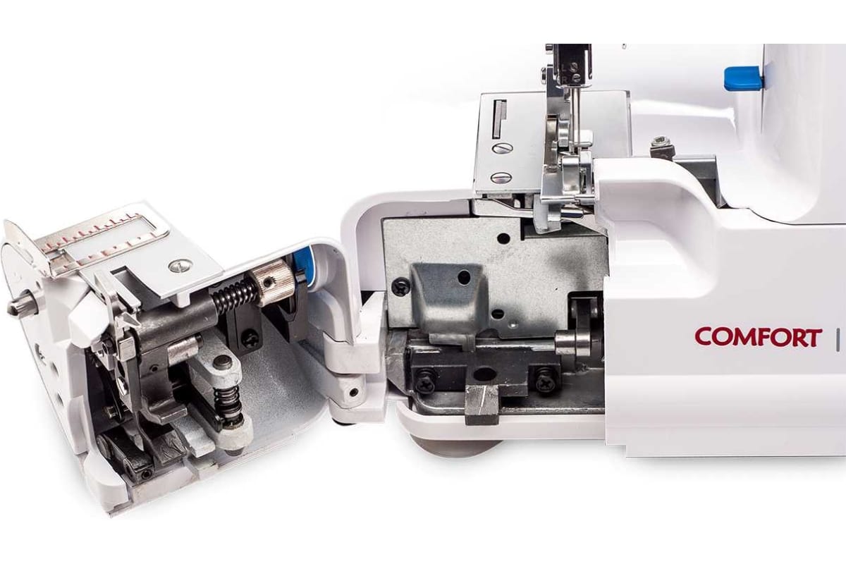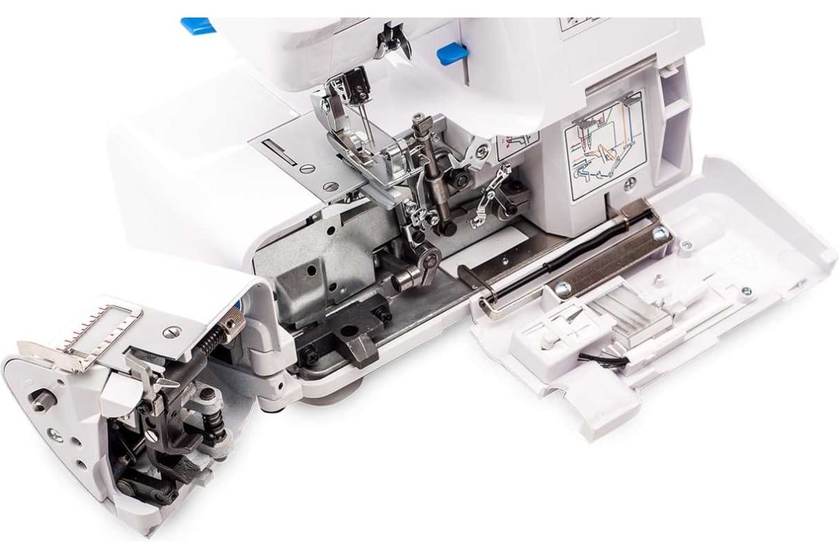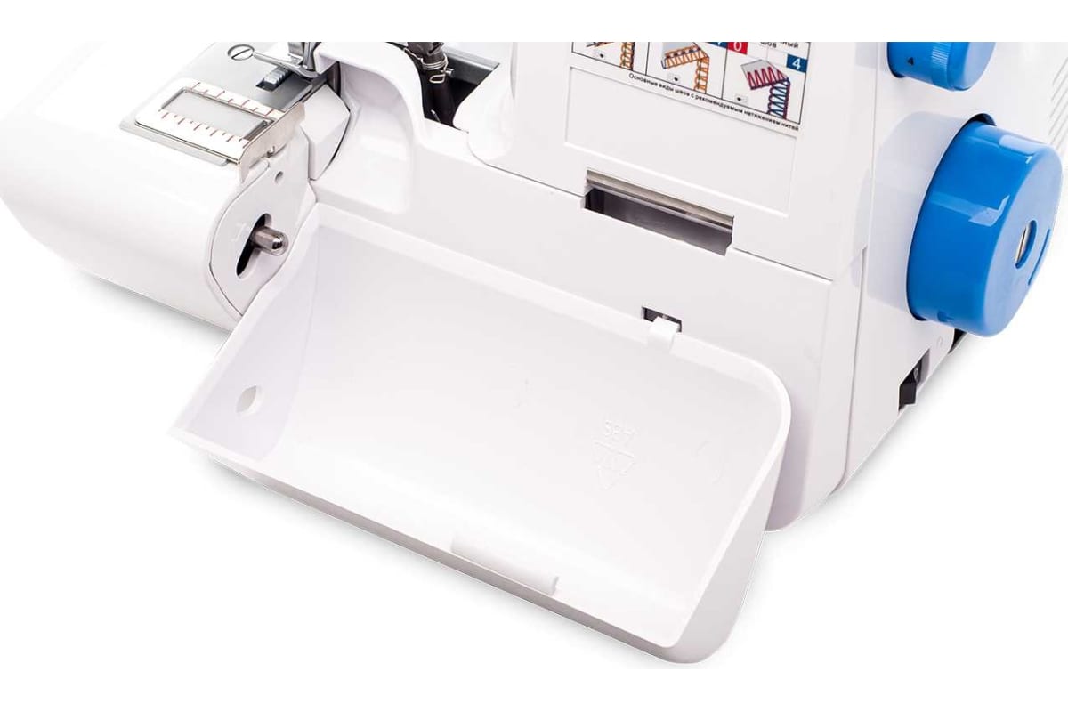 Запатентованная система полностью открывающегося столика позволяет получить свободный доступ к петлителям для заправки ниток, что и делает заправку оверлока очень простой, по сравнению с другими моделями.