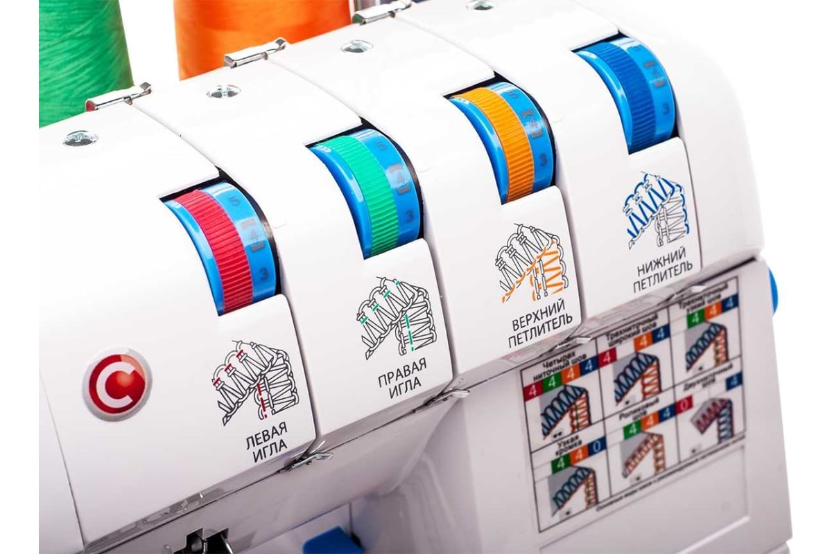Оверлок предназначен для одновременной обрезки края ткани, закрепления и обшивки края и сшивания полотен между собой. Выполняет 2-х, 3-х и 4-х ниточные строчки, имитацию плоского шва.
