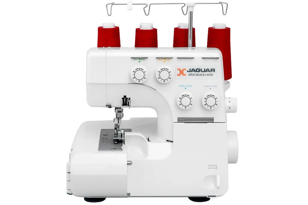 Оверлок JAGUAR 055D отлично подойдет для начинающих пользователей, поскольку он прост в управлении и надежен. Эта модель имеет большой набор необходимых для шитья строчек и предназначена для пошива из различных видов тканей. Это краеобмёточная 3/4-х ниточная машина для профессиональной обработки материала с дифференциальной подачей ткани. Отныне ваши изделия ничем не будут отличаться от сшитых профессионалами. Этот четырехниточный оверлок с легкостью перестраивается в трехниточный. На оверлоке можно легко регулировать длину (до 4 мм) и ширину стежка (до 7 мм) и выполнять 3-4 ниточный стежок, а в общем – двенадцать обметочных операций. Оверлок Jaguar 055 имеет регулятор нажима лапки с оцифровкой, это позволяет облегчить отладку оверлока для шитья тканей разной толщины. Передняя часть столика выполнена откидывающейся вбок, что облегчает процесс заправки нити в петлители.