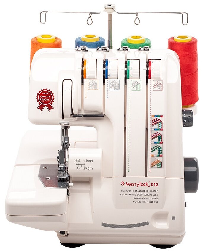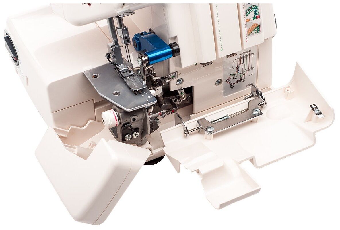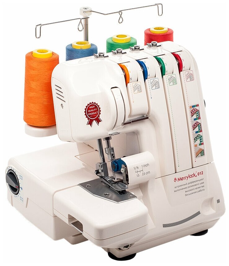 Четырехниточный оверлок предназначен для использования как дома, так и в небольших ателье. Максимальная скорость шитья равна 1300 стежкам в минуту. Модель имеет алюминиевую раму и механизм, полностью изготовленный из металла: эта особенность гарантирует устройству высочайшую надежность. Оверлок может выполнять 3-ниточные и 4-ниточные оверлочные строчки. Вы сможете по достоинству оценить простую заправку и регулировку нитей. Предусмотрена цветовая индикация заправки нитей. Оверлок использует ручной контроль натяжения нитей и допускает регулировку ширины обреза тканей.