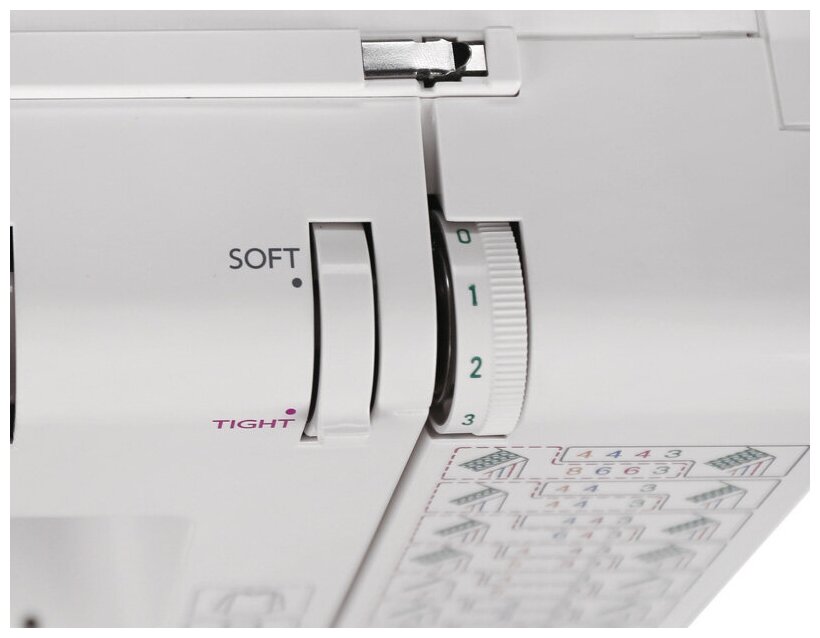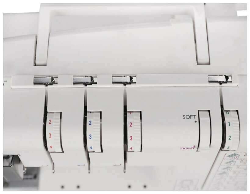 В комплектации модели есть система, отвечающая за показатель нитенатяжения при прохождении через петлитель.