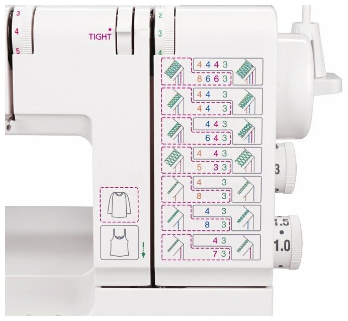 Поддерживается выполнение 7-ми швов, включая цепной и распошивальный.