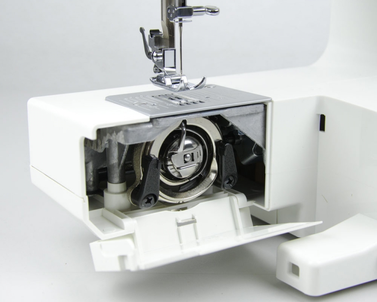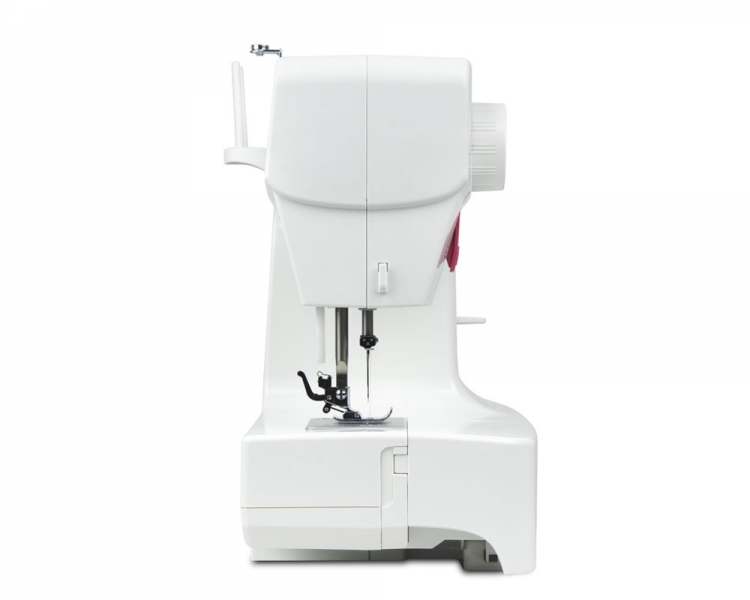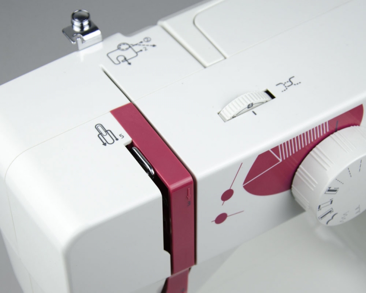 Вертикальный качающийся челнок позволит работать как с плотными так и с легкими тканями. Функция петля-полуавтомат - это возможность выполнять бельевые петли в три приема. Регулировка ширины и длины стежка расширит разнообразие шва при шитье. В комплекте с машиной идет набор лапок, пластина для штопки, масло, шпули, иглы и направляющая шитья.