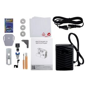 Прибор с электромеханическим управлением и функцией реверса выполняет 24 операции. Доступны петля-полуавтомат, две трикотажные, четыре рабочие, четыре потайные, шесть оверлочных и шесть декоративных строчек. Скорость шитья, давление лапки и натяжение нити плавно регулируются. Длина стежка изменяется в диапазоне от 1 мм до 4 мм, высота подъема лапки — до 7 мм.