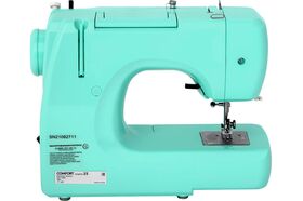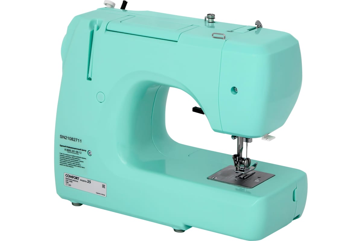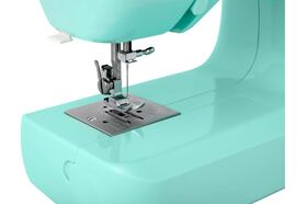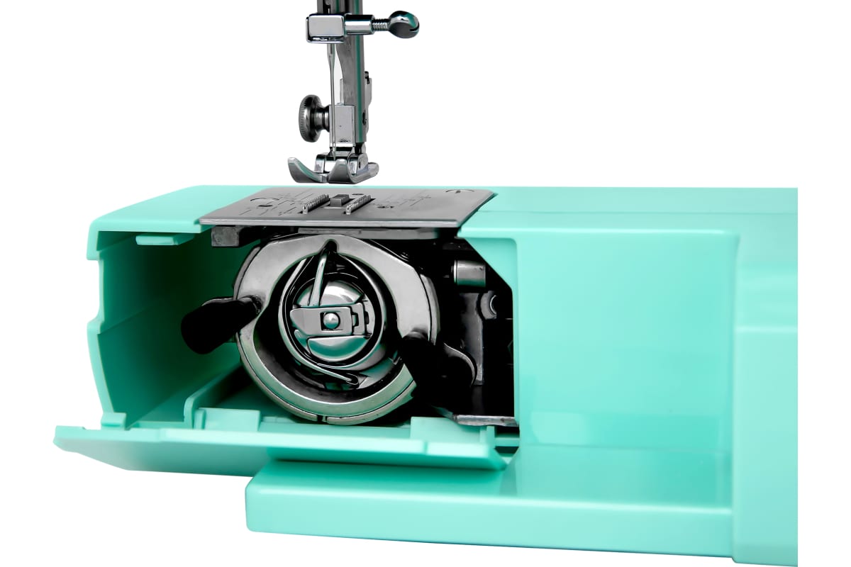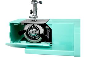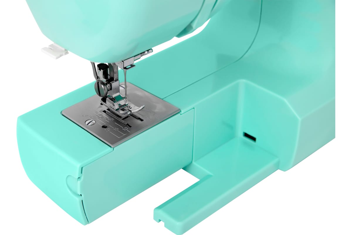 Дополнительное преимущество в том, что размер машинки составляет 3/4 от размеров полноразмерных моделей, а челночный узел стандартный. Соответственно машинка шьет так же, как взрослые модификации, а по габаритам спокойно умещается на полке любого шкафа. Рекомендуется для простых швейных работ по дому.