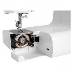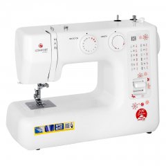 Универсальная швейная машина с большим количеством операций, работает со всеми видами тканей, в том числе джинса и трикотаж. Оптимальный выбор для дома и настоящая «рабочая лошадка» для любого шитья. Данная модель характеризуется увеличенным ресурсом. Рама, формирующая механическую прочность конструкции, выполнена цельнолитой из авиационного алюминия.