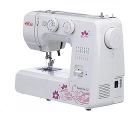 Электромеханическая, простая в управлении швейная машина Elna EasyLine 12 имеет приятный дизайн и набор всех необходимых функций. Используя тройную усиленную строчку, Вы без особого труда стачаете детали трикотажного изделия. Край изделия будет выглядеть идеально, если Вы обработаете его одной из оверлочных строчек. Используя рамку для петли и функцию петля, Вы можете выполнить любое количество аккуратных пуговичных петель. EasyLine 12 станет надёжным помощником в домашнем использовании.