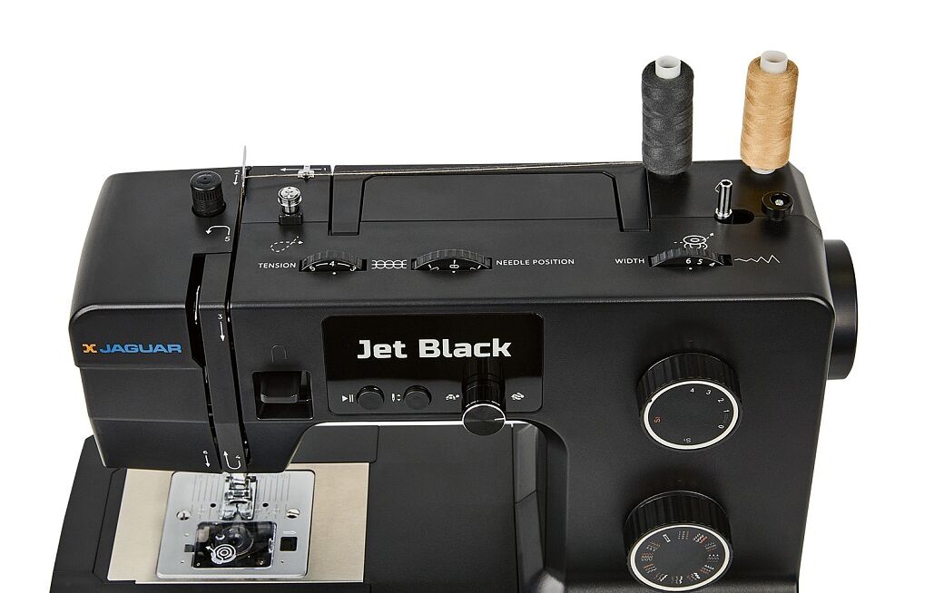100 Вт, мощная и надёжная, красивая и удобная JAGUAR Jet Black с регулятором давления лапки на ткань может работать с разными типами тяжёлых и плотных материалов, справится с любым домашним ремонтом, быстро сошьёт тяжёлые шторы, постельное бельё, халат и даже джинсы.