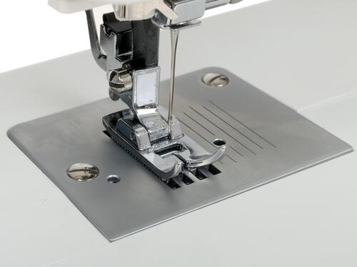 Комплектация вспарыватель, две отвертки (большая и маленькая), педаль, чехол, шпульки, щеточка для чистки, инструкция, лапка универсальная, лапка для пришивания пуговиц, фетровая прокладка, катушкодержатель, лапка для вшивания молнии, иглы, лапка для потайной строчки, масленка, рамка для автоматической петли