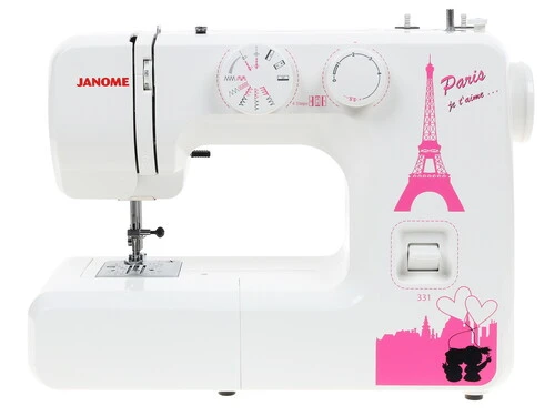 Швейная машина Janome 331, дизайн которой напоминает нам об одной из столиц моды - городе Париже, позволит вам создавать эксклюзивную одежду собственными руками. Устройство относится к электромеханическим моделям, отличающимся хорошей производительностью и долговечностью. Устройство оборудовано вертикальным качающимся челноком. Лапка поднимается на высоту до 14 мм, поэтому на этом приборе вы без труда сможете прострочить ткань плотной фактуры, сложенную в несколько раз. Максимальная длина и ширина стежка имеют ограничения 4 и 5 мм соответственно.